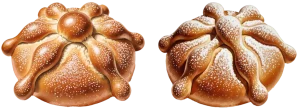 En estas regiones del norte y occidente, el pan de muerto conserva su forma clásica: redondo u ovalado, en presentaciones individuales o familiares, desde piezas de 60 gramos hasta roscas de dos kilos. Cada familia adapta su receta, con toques de anís, mantequilla o azúcar morena.