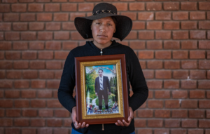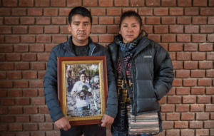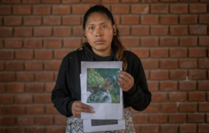 La carne de jóvenes, trabajadores, adolescentes e incluso niños pequeños ha sido lacerada por los tiros del Estado que califica a los manifestantes de “terrorista” o violentista”. Estos retratos son de víctimas indirectas. Llevan en sus manos las fotografías de un familiar asesinado o herido.